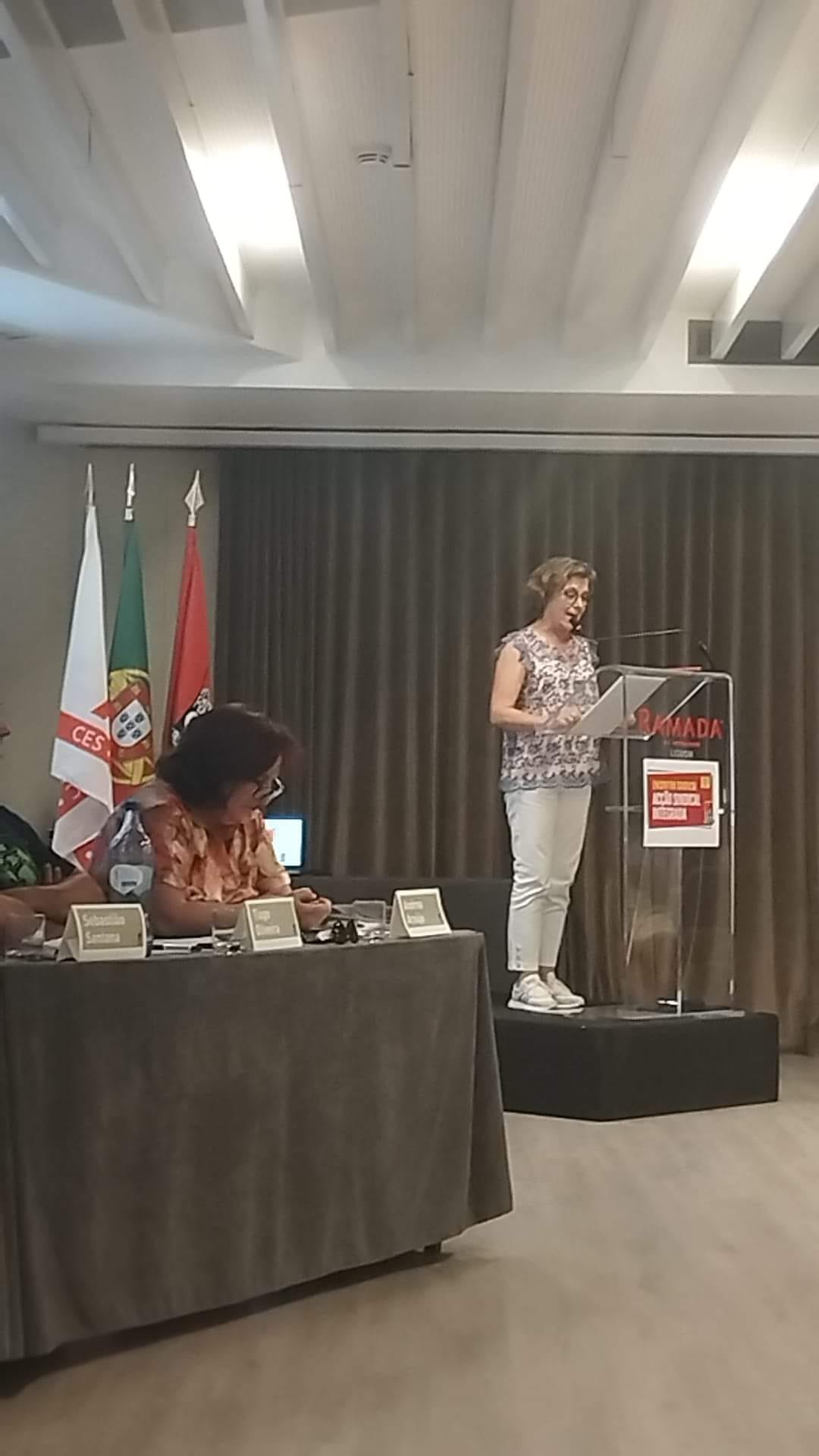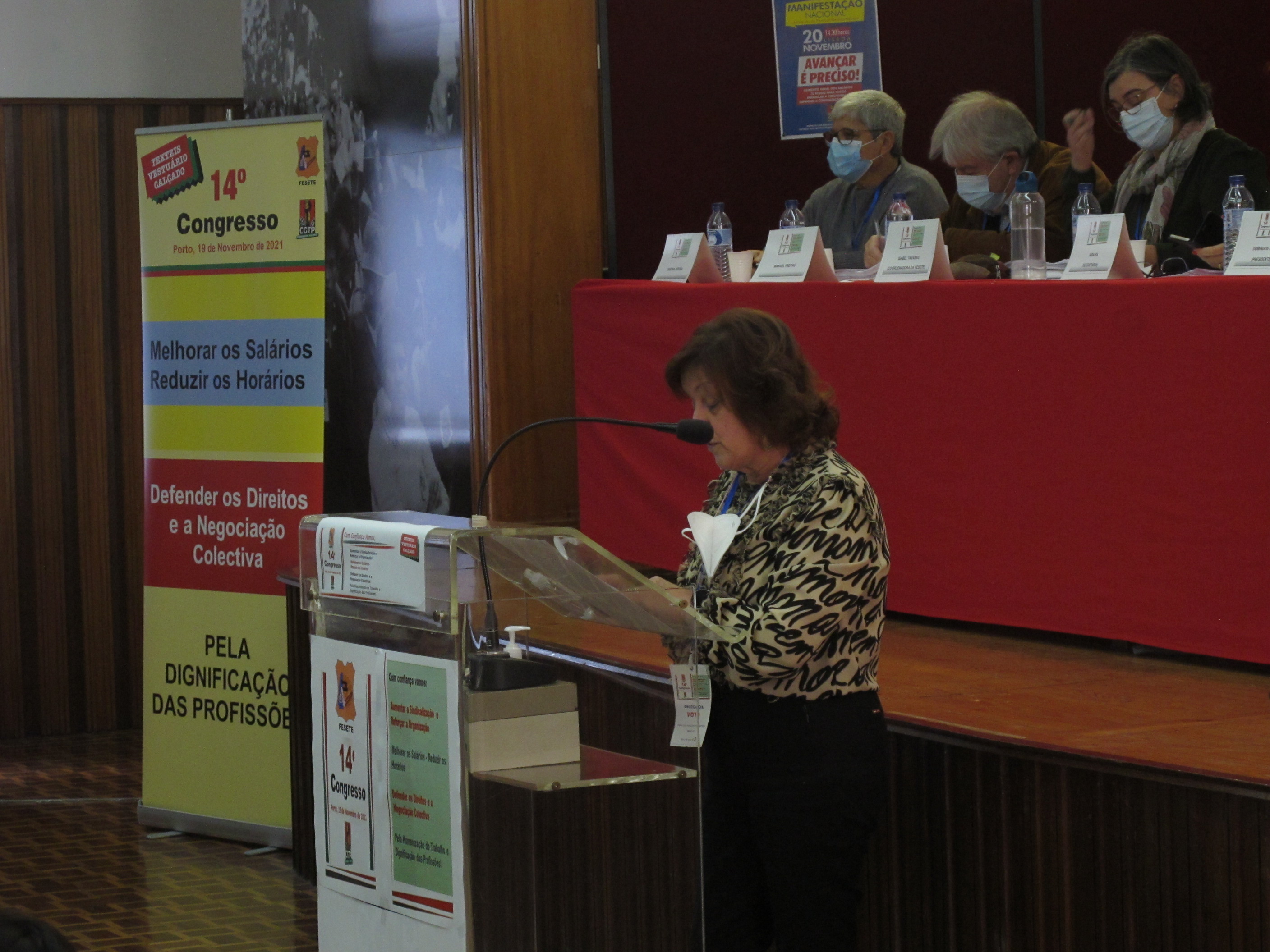 Coordenadora do SINPICVAT, Luisa Pinto a intervir no 14º Congresso