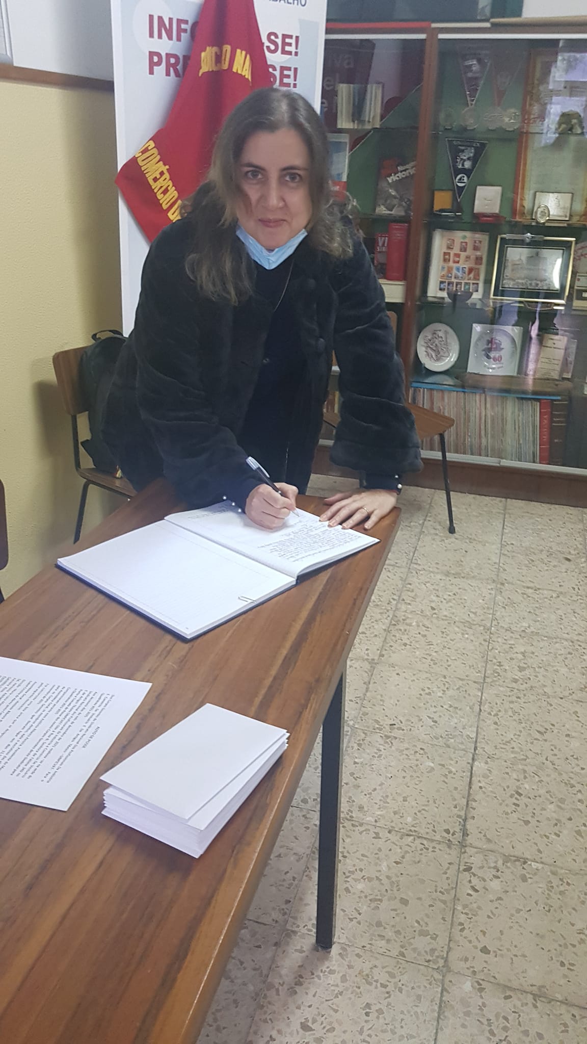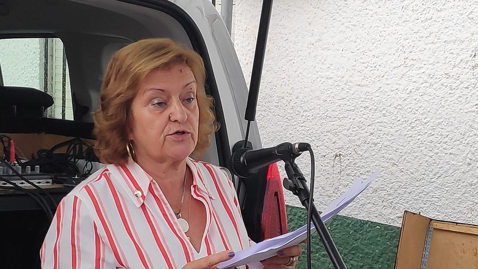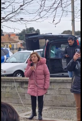 Luisa Marques, Presidente do Sindicato do Vestuário e Confecção - SINPICVAT, e, membro do Conselho Nacional e da Comissão Executiva da CGTP-IN intervindo em Lever Gaia, junto ao Centro de Saúde local em nome da CGTP-IN pela defesa de um Serviço Nacional de Saúde, que corresponda as exigências reais e necessárias da população Portuguesa.