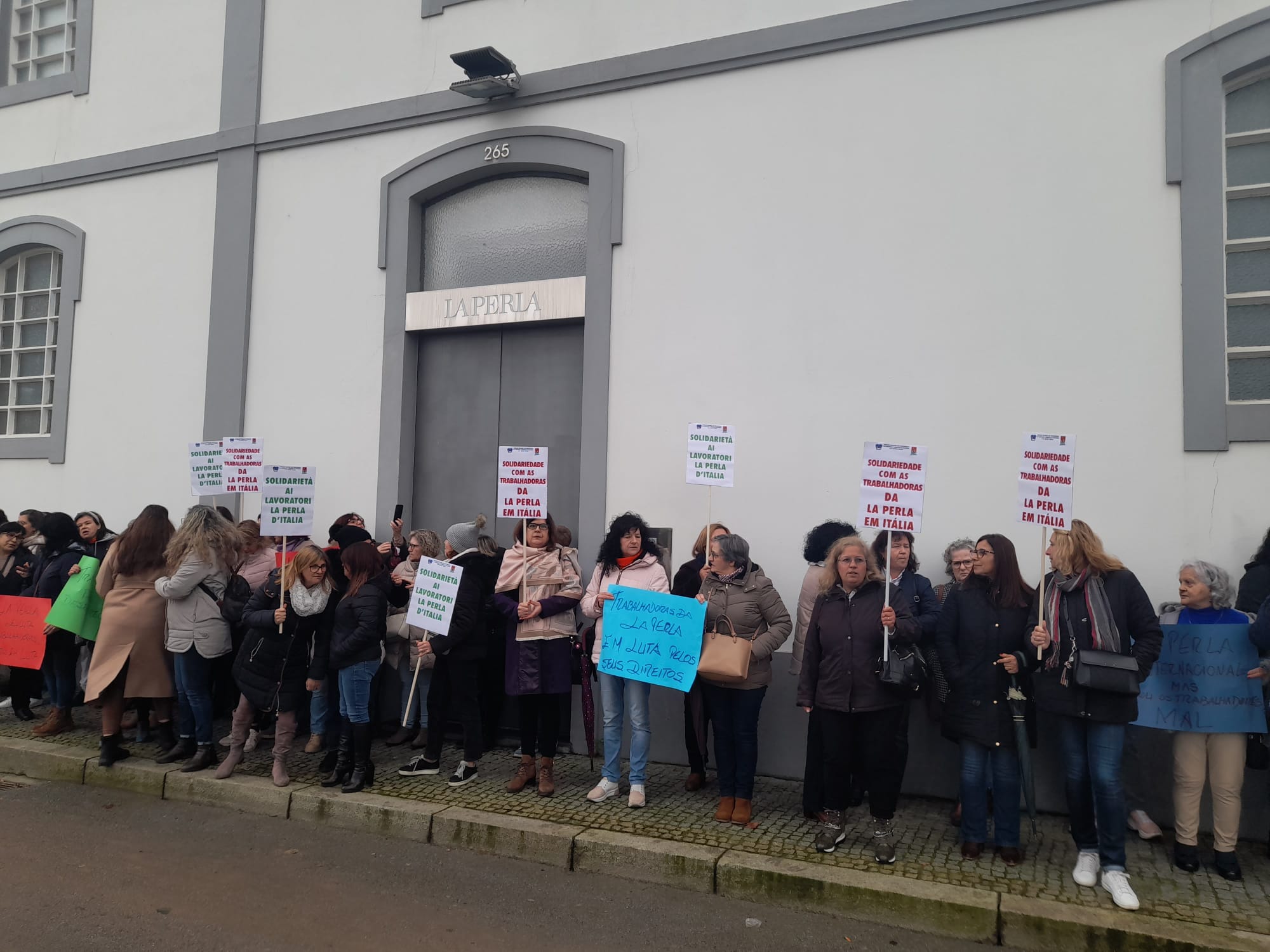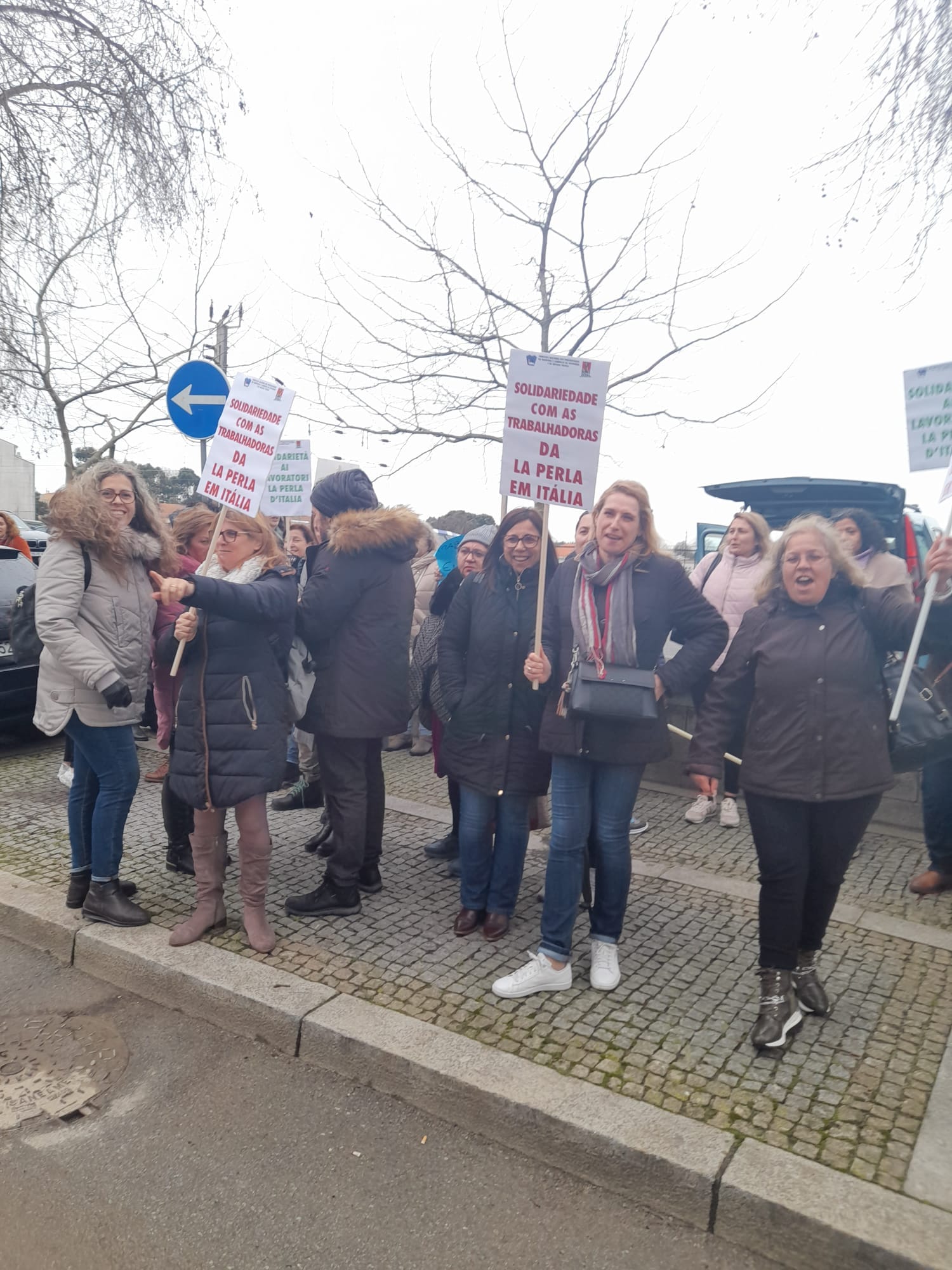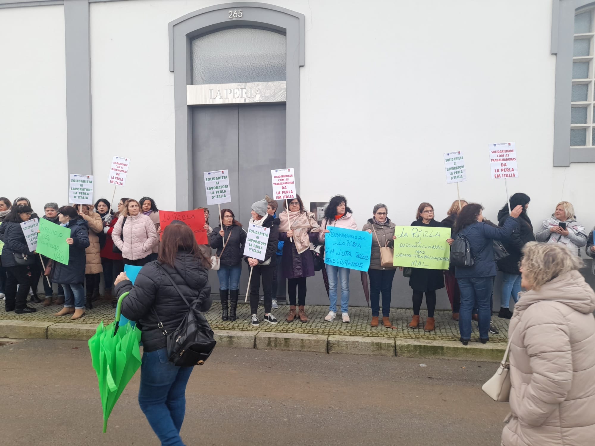 Luisa Pinto Presidente do Sindicato do Vestuário, intrevindo na concentração das trabalhadoras da Lá Perla, Vila Nova de Gaia, 9 de Janeiro 202, a Luta Continua